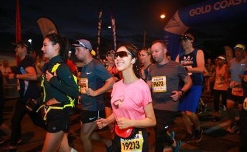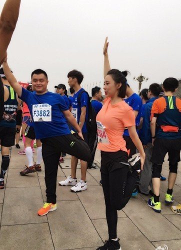 但还有一个风景线虽然变味,还是得到不少网友的点赞——那就是邀请赵奕欢、潘晓婷等名人美女来到现场参加。特别是在她们热身和跑步的时候,基本上都是全程有摄影师跟拍,其中她们的好身材风头是完全超过了马拉松的热度......