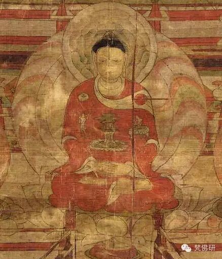 (敦煌绢画 毗卢遮那佛 双肩有日月,胸部是须弥山)