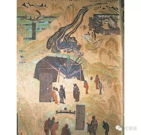 (初唐 敦煌323窟 佛图澄神异故事 左上为幽州灭火)